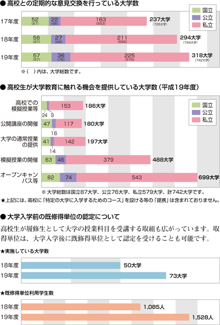 ここでの「連携」とは、高校との定期的な意見交換や、高校での模擬授業など、高校と大学の連携のもとに行われる教育活動を指します。