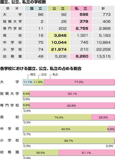 ※専門学校の数値のみ平成20年度学校基本調査報告書(平成20年12月発行)より
