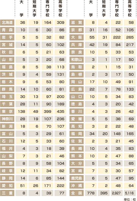専門学校の数値のみ平成21年度学校基本調査報告書(平成21年12月発行)より