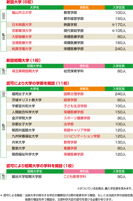 平成23年度開設予定大学等一覧、平成23年度開設予定学部等認可申請一覧