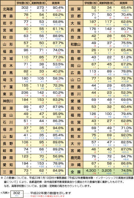 平成22年度職場体験・インターンシップ実施状況等調査結果より