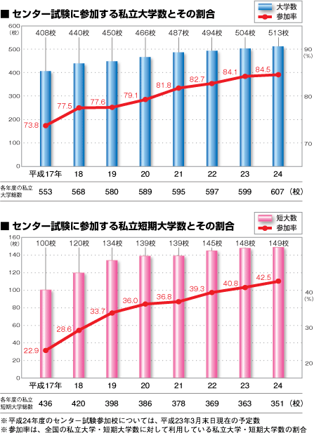 「平成24年度大学入学者選抜から大学入試センター試験に新たに参加する大学等について」より<独立行政法人 大学入試センター>