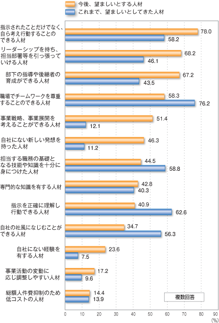 企業の人材育成方針として、どのような人材に育成していくことが望ましいかを調査した内容です。
