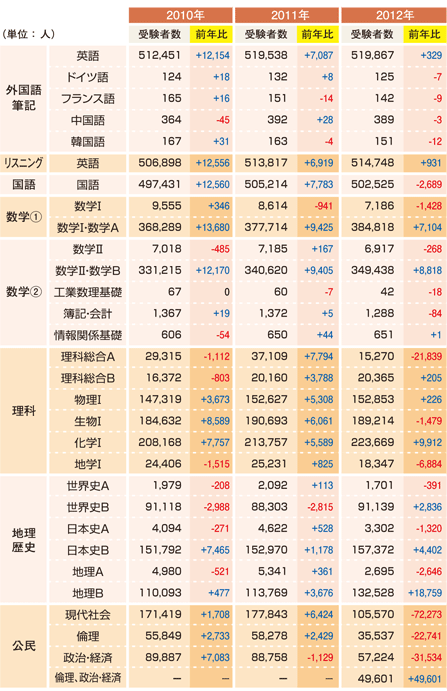 「平成24年度大学入試センター試験実施結果の概要」より
