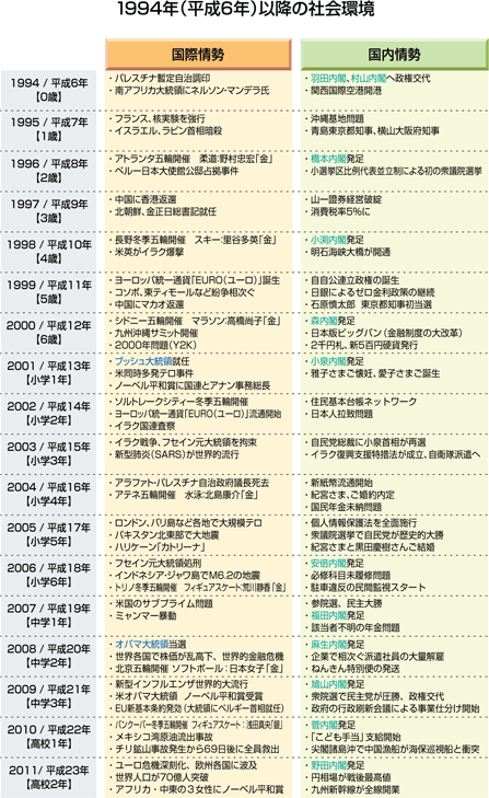 関西国際空港が開港した年に、現在の高校3年生は生まれました。彼らの育った時代背景を理解するための一助として、ご高覧いただければ幸いです。