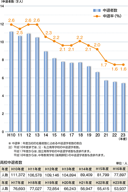 平成23年度「児童生徒の問題行動等生徒指導上の諸問題に関する調査」に