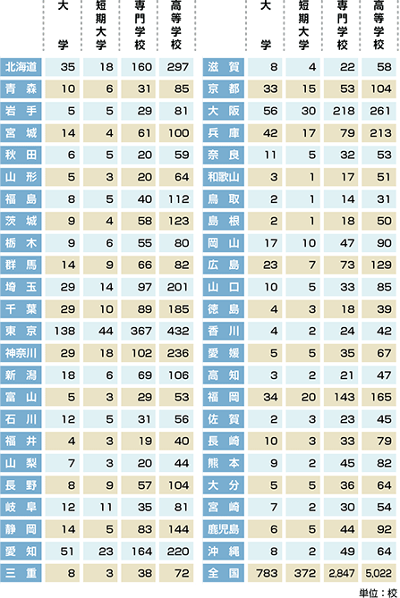 都道府県別/大学・短期大学・専門学校・高等学校
