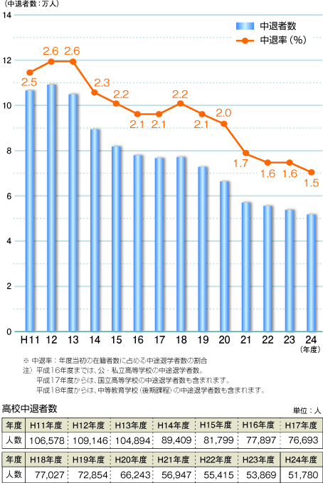 平成24年度「児童生徒の問題行動等生徒指導上の諸問題に関する調査」に