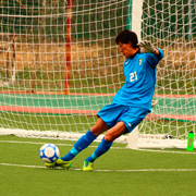 FIFA公認の人工芝で練習。基礎練習も充実しています。