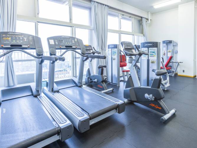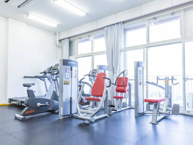 大学における健康と体力の保持・増進の中心の場であり、各種運動部の課外活動でも利用されています。地下1階には、Bジム、数多くのトレーニング機器を設置したフィットネスルームと更衣室があります。