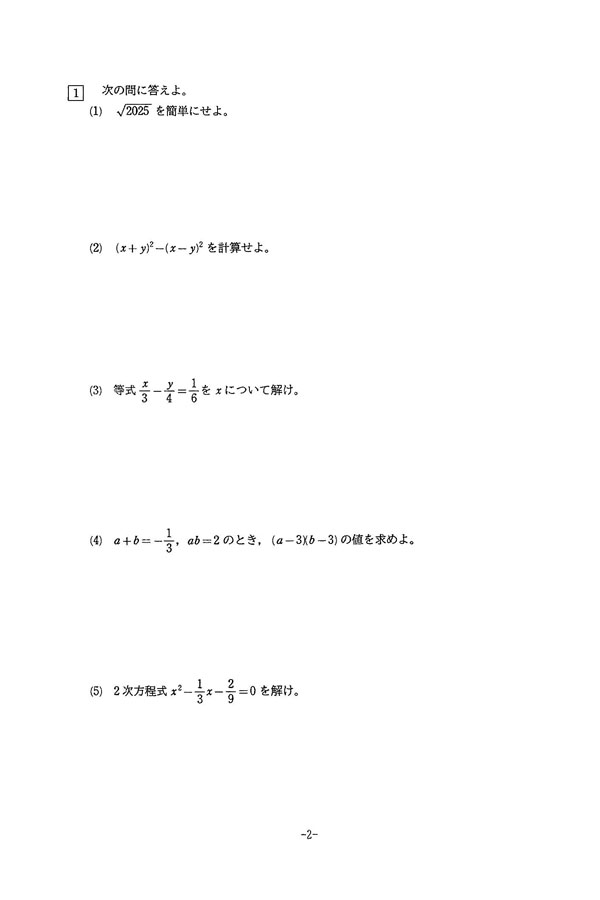2025年度入試過去問題 特別奨学生推薦(数学 問題)(1ページ目)|清真学園高等学校の入試過去問