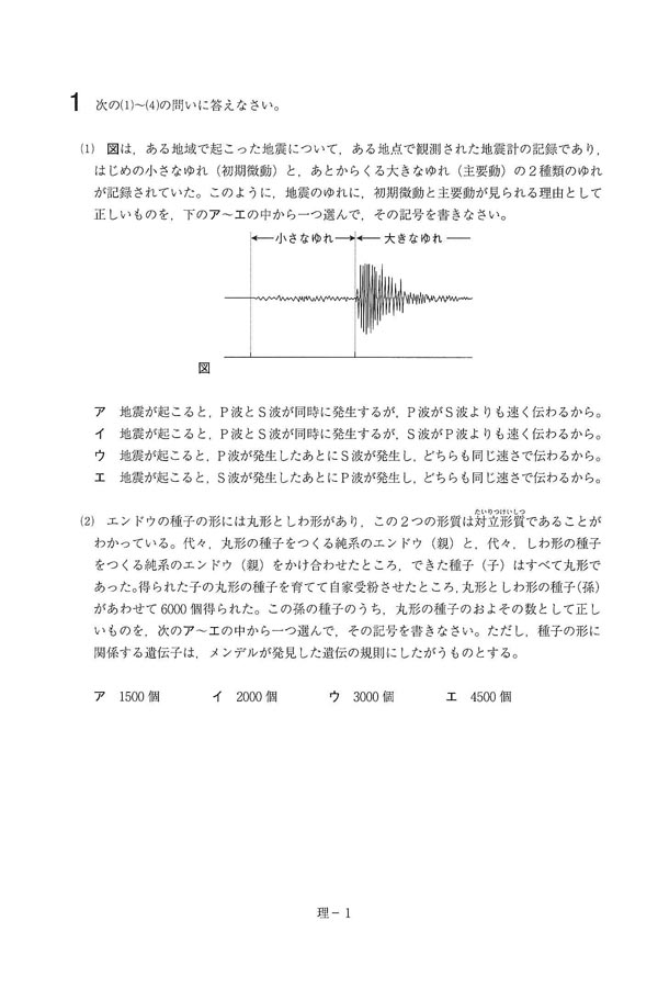 2020年度入試過去問題  一般(理科 問題)(1ページ目)|常総学院高等学校の入試過去問