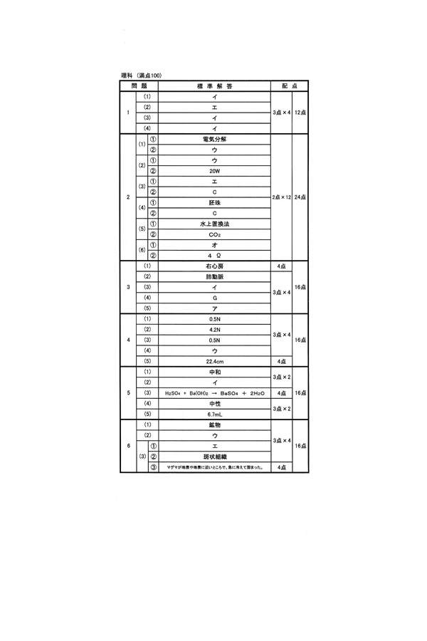 平成28年度入試過去問題(理科 解答)(1ページ目)|常総学院高等学校の入試過去問