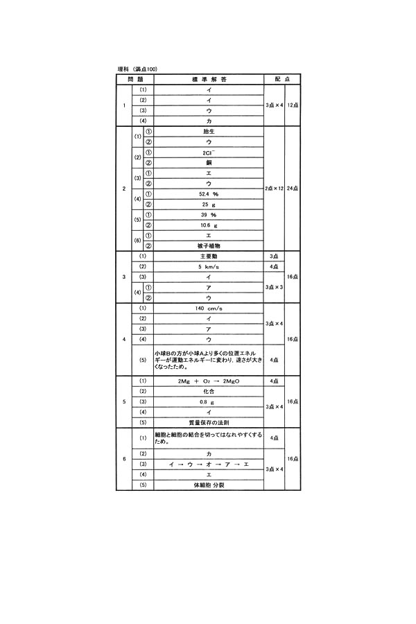 平成29年度入試過去問題(理科 解答)(1ページ目)|常総学院高等学校の入試過去問