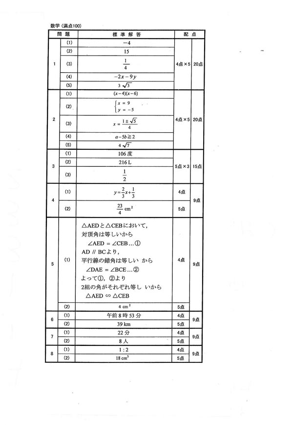 平成30年度入試過去問題(数学 解答)(1ページ目)|常総学院高等学校の入試過去問