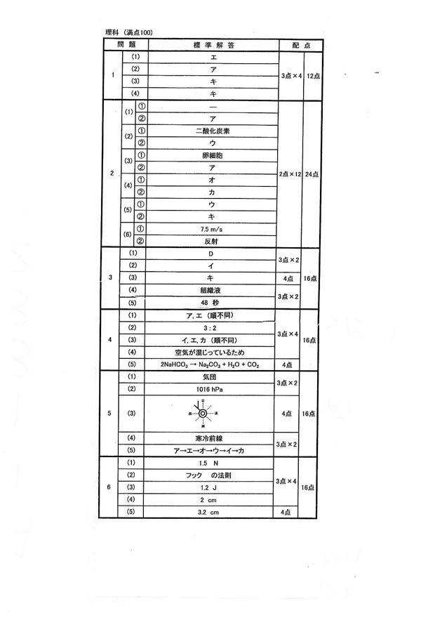 平成30年度入試過去問題(理科 解答)(1ページ目)|常総学院高等学校の入試過去問