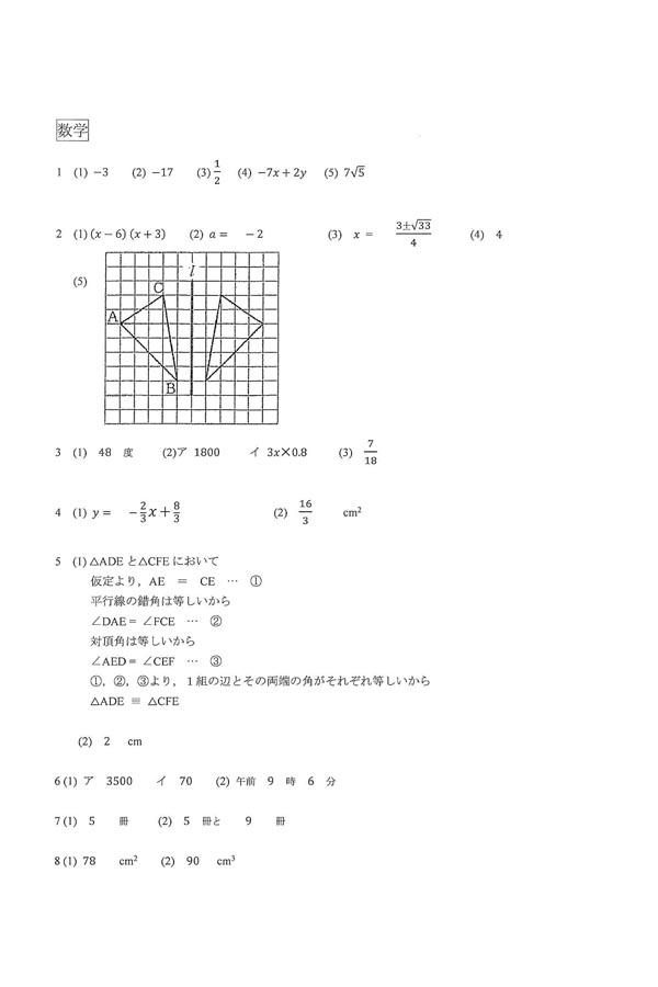 2020年度入試過去問題  推薦(数学 解答)(1ページ目)|常総学院高等学校の入試過去問
