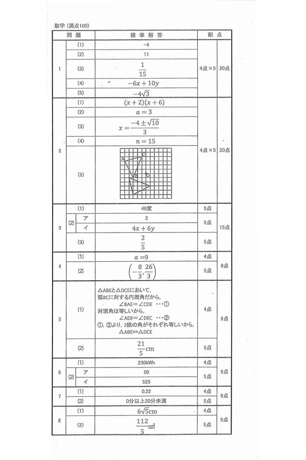 2020年度入試過去問題  一般(数学 解答)(1ページ目)|常総学院高等学校の入試過去問