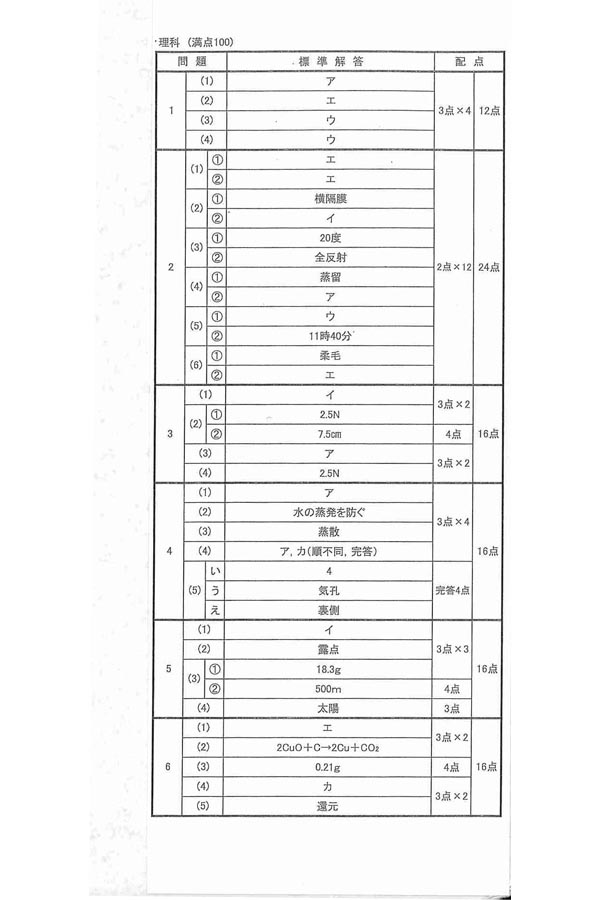 2020年度入試過去問題  一般(理科 解答)(1ページ目)|常総学院高等学校の入試過去問