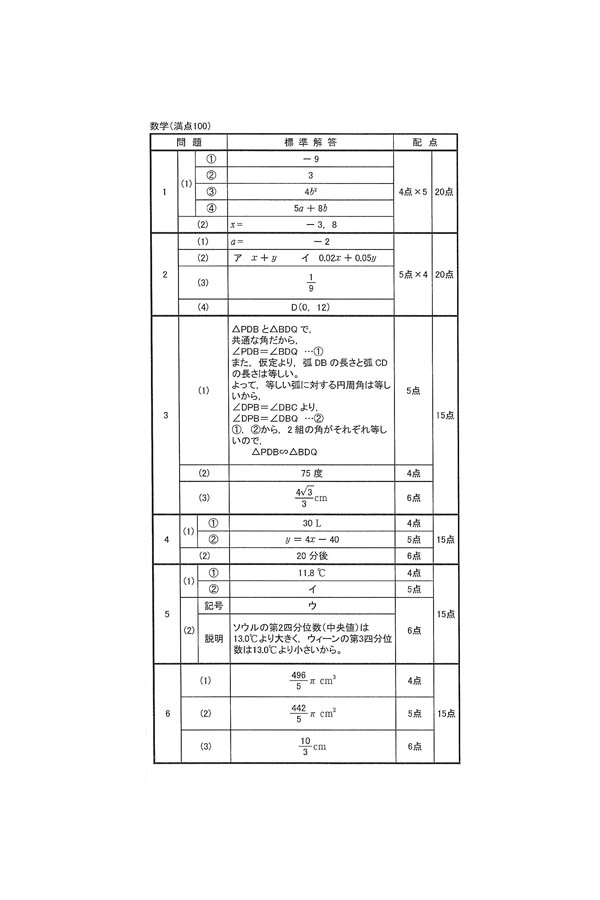 2023年度入試過去問題(数学 解答)(1ページ目)|常総学院高等学校の入試過去問