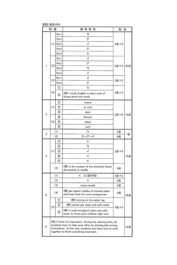 2023年度入試過去問題(英語 解答)(1ページ目)|常総学院高等学校の入試過去問