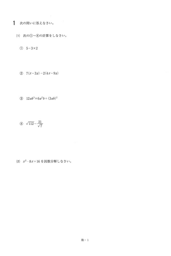 2024年度入試過去問題(数学 問題)(1ページ目)|常総学院高等学校の入試過去問