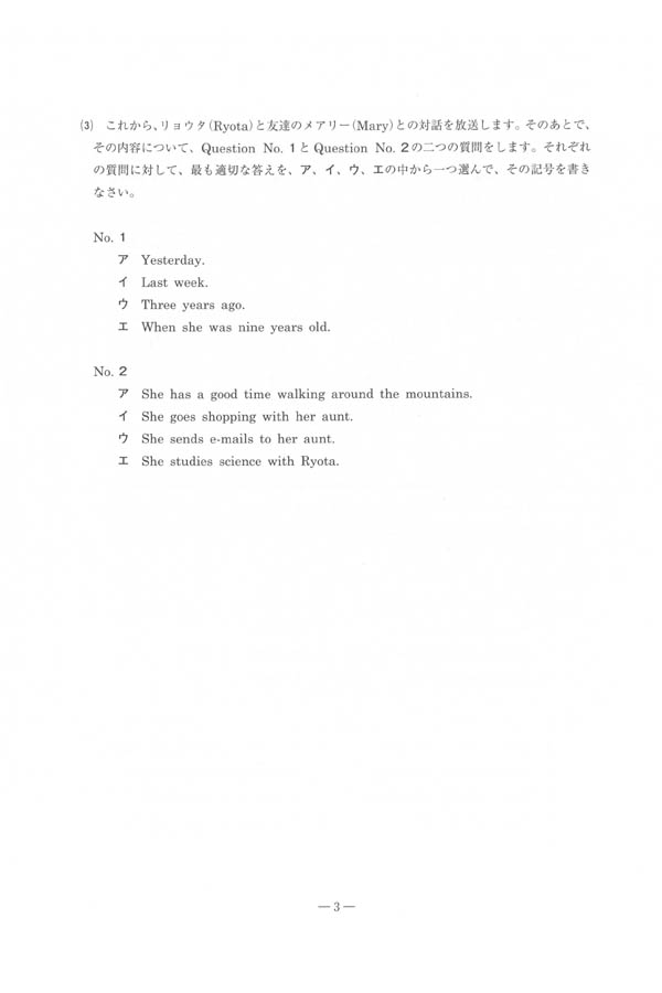 2023年度入試過去問題 一般入学(英語 問題)(3ページ目)|水戸葵陵高等学校の入試過去問