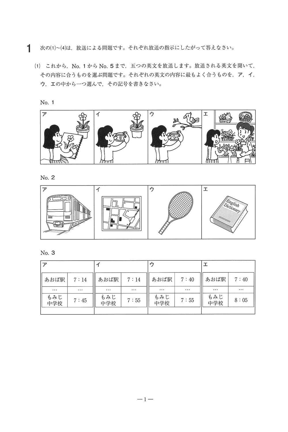 2020年度入試過去問題 チャレンジ入学(英語 問題)(1ページ目)|水戸葵陵高等学校の入試過去問
