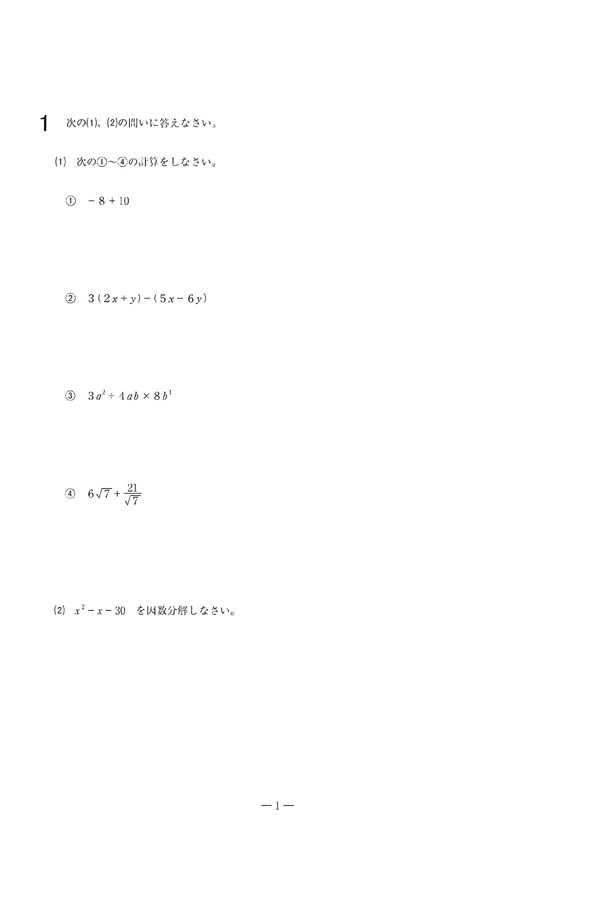 令和6年度入試過去問題 一般入学(数学 問題)(1ページ目)|水戸葵陵高等学校の入試過去問