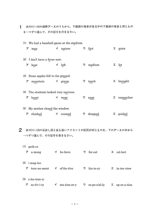 令和7年度入試過去問題 推薦入試(英語 問題)(1ページ目)|水戸葵陵高等学校の入試過去問