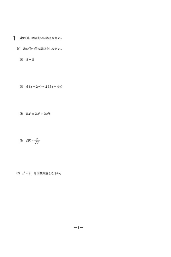 令和7年度入試過去問題 チャレンジ入試(数学 問題)(1ページ目)|水戸葵陵高等学校の入試過去問
