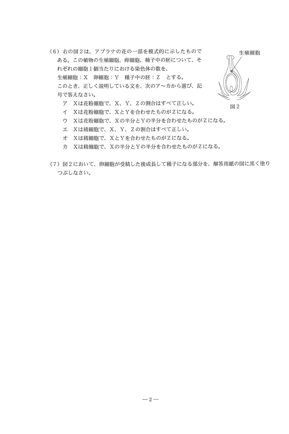 令和2年度入試過去問題 学業特待入試(理科 問題)(2ページ目)|足利大学附属女子高等学校の入試過去問