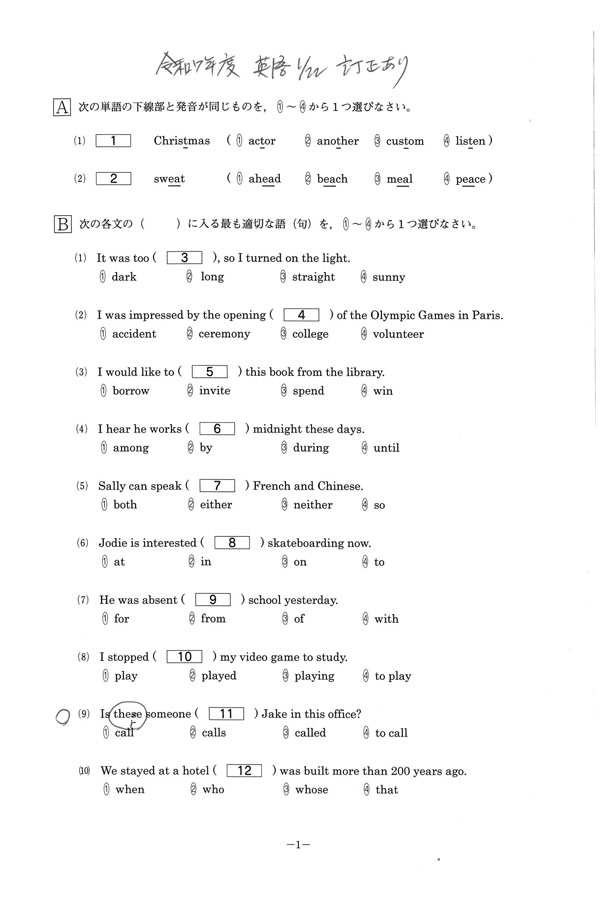 令和7年度入試過去問題(英語 問題)(1ページ目)|正智深谷高等学校の入試過去問