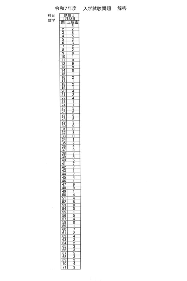 2025年度入試過去問題 第1回推薦(1/22)(数学 解答)(1ページ目)|狭山ヶ丘高等学校の入試過去問