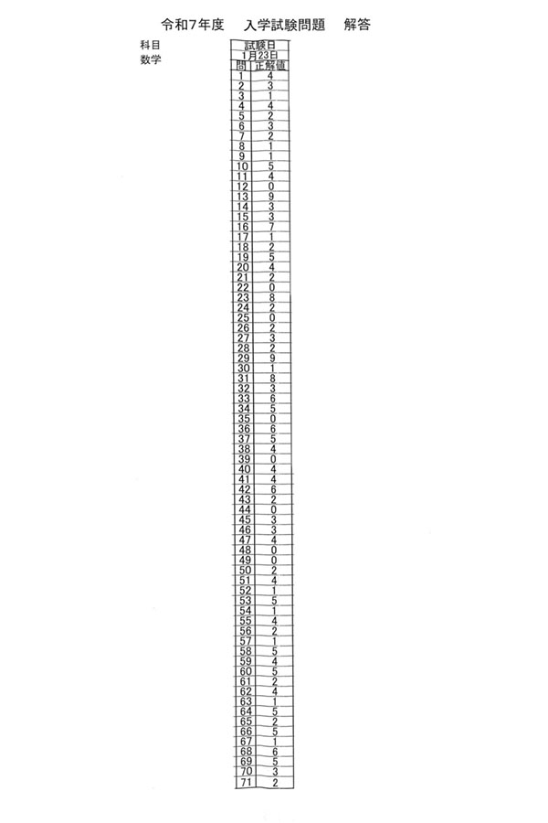 2025年度入試過去問題 第2回推薦(1/23)(数学 解答)(1ページ目)|狭山ヶ丘高等学校の入試過去問