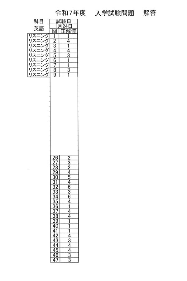 2025年度入試過去問題 第3回推薦(1/24)(英語 解答)(1ページ目)|狭山ヶ丘高等学校の入試過去問