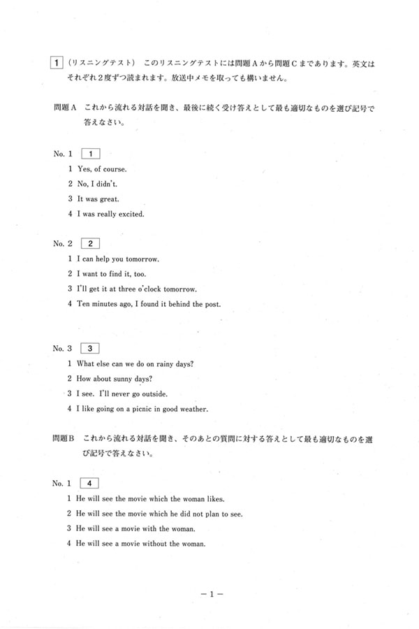 入試過去問(問題)(1ページ目)|狭山ヶ丘高等学校の入試過去問