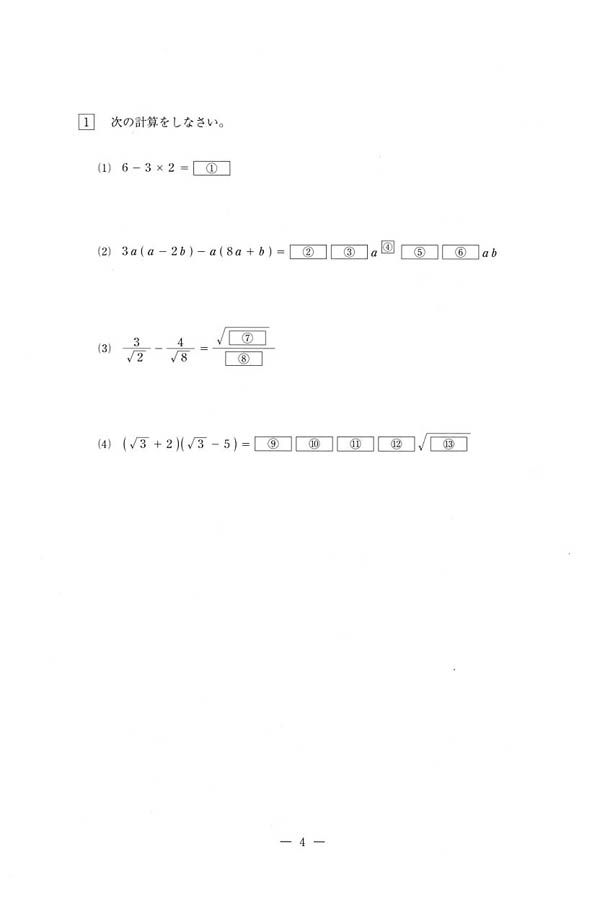 平成27年度入試過去問題 第1回(数学 問題)(1ページ目)|浦和実業学園高等学校の入試過去問