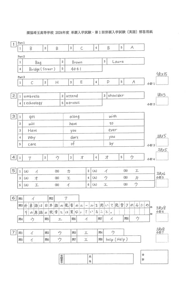 入試過去問(解答)(1ページ目)|獨協埼玉高等学校の入試過去問