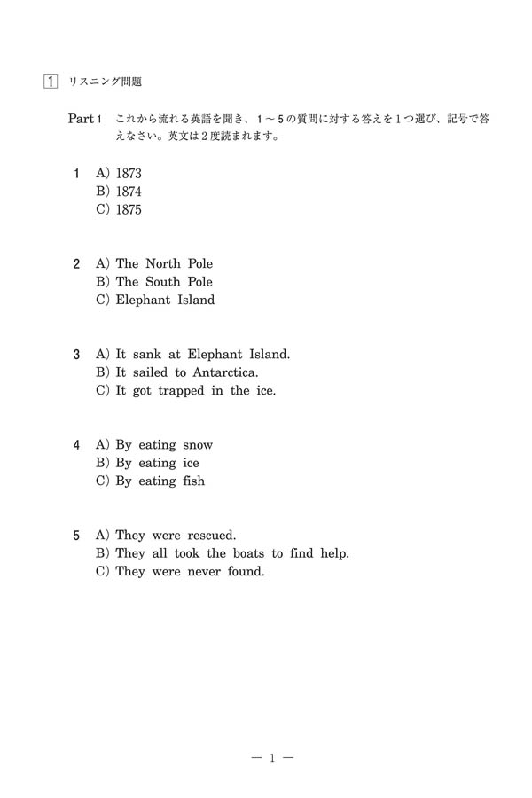 2024年度入試過去問題 単願入試・第1回併願入試(英語 問題)(1ページ目)|獨協埼玉高等学校の入試過去問