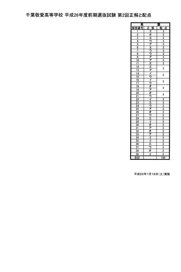 平成26年度入試過去問題 第2回(英語 解答)(1ページ目)|千葉敬愛高等学校の入試過去問