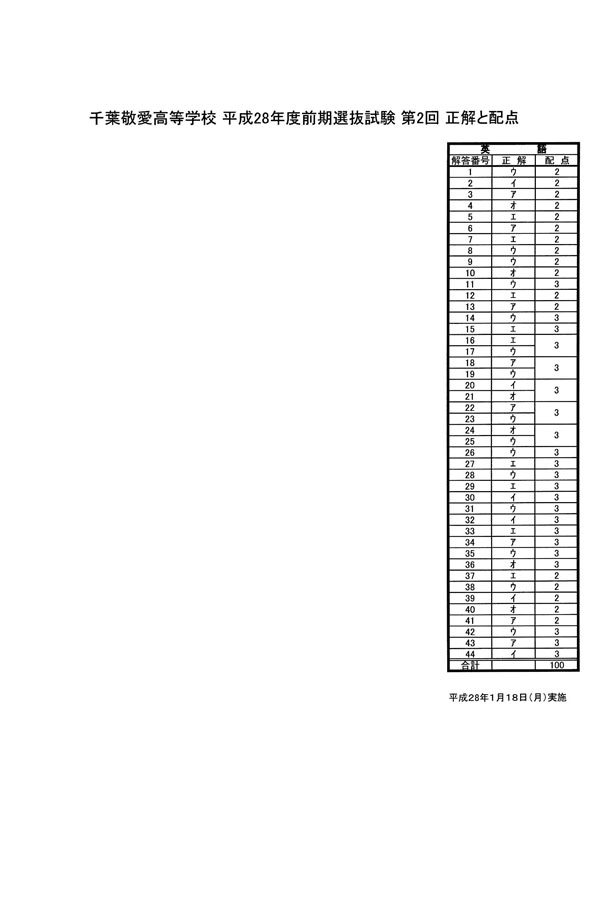 入試過去問(解答)(1ページ目)|千葉敬愛高等学校の入試過去問