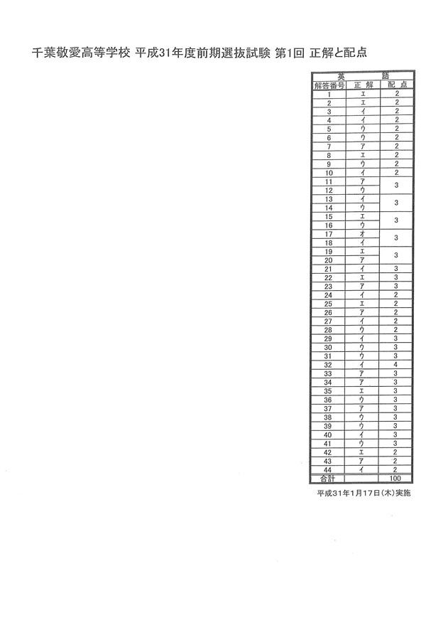 入試過去問(解答)(1ページ目)|千葉敬愛高等学校の入試過去問