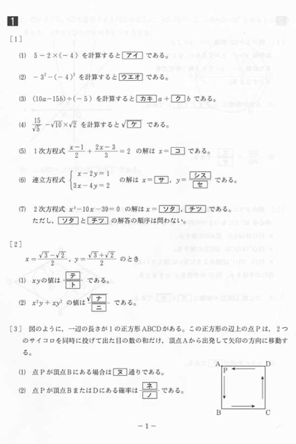 平成21年度入試過去問題 前期(数学 問題)(1ページ目)|千葉敬愛高等学校の入試過去問