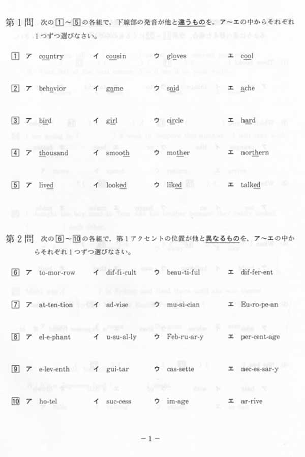 入試過去問(問題)(1ページ目)|千葉敬愛高等学校の入試過去問
