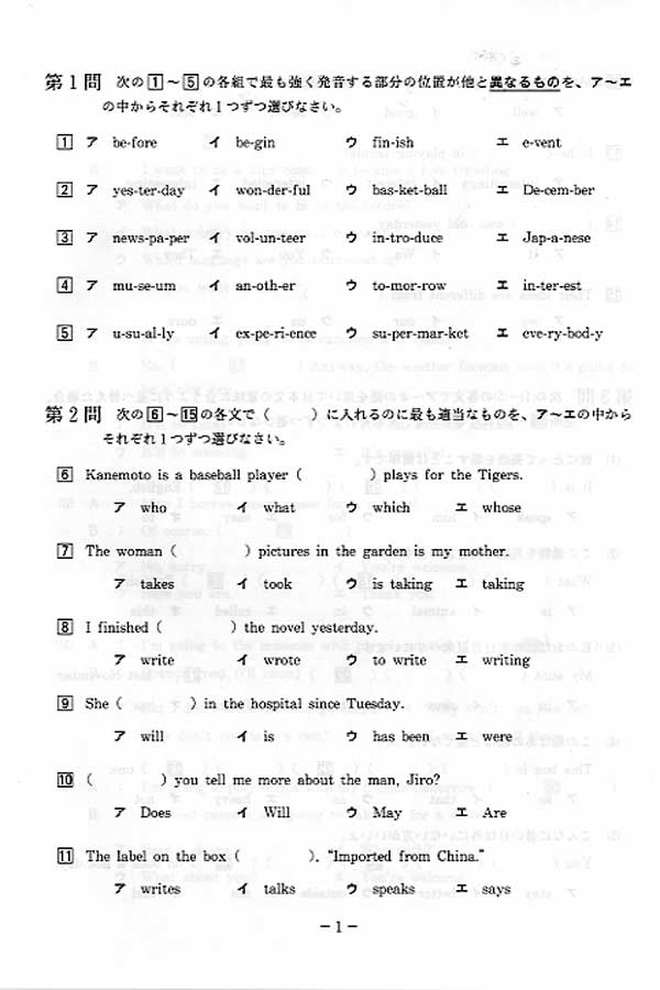 平成23年度入試過去問題 前期(英語 問題)(1ページ目)|千葉敬愛高等学校の入試過去問