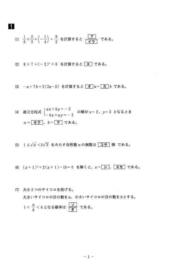 平成26年度入試過去問題 第2回(数学 問題)(1ページ目)|千葉敬愛高等学校の入試過去問