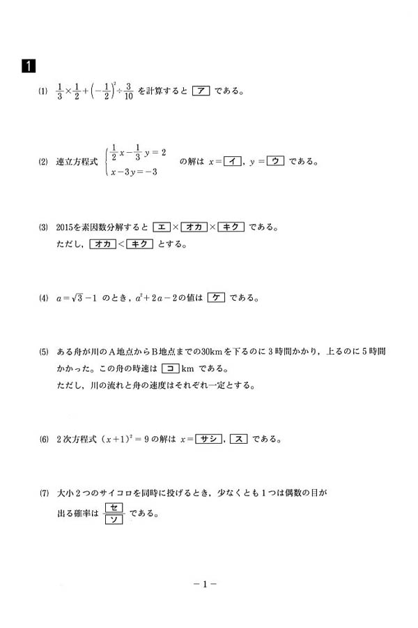平成27年度入試過去問題 第3回(数学 問題)(1ページ目)|千葉敬愛高等学校の入試過去問