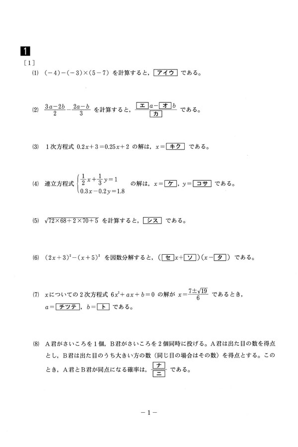 平成28年度入試過去問題 第3回(数学 問題)(1ページ目)|千葉敬愛高等学校の入試過去問