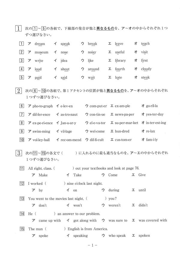 入試過去問(問題)(1ページ目)|千葉敬愛高等学校の入試過去問